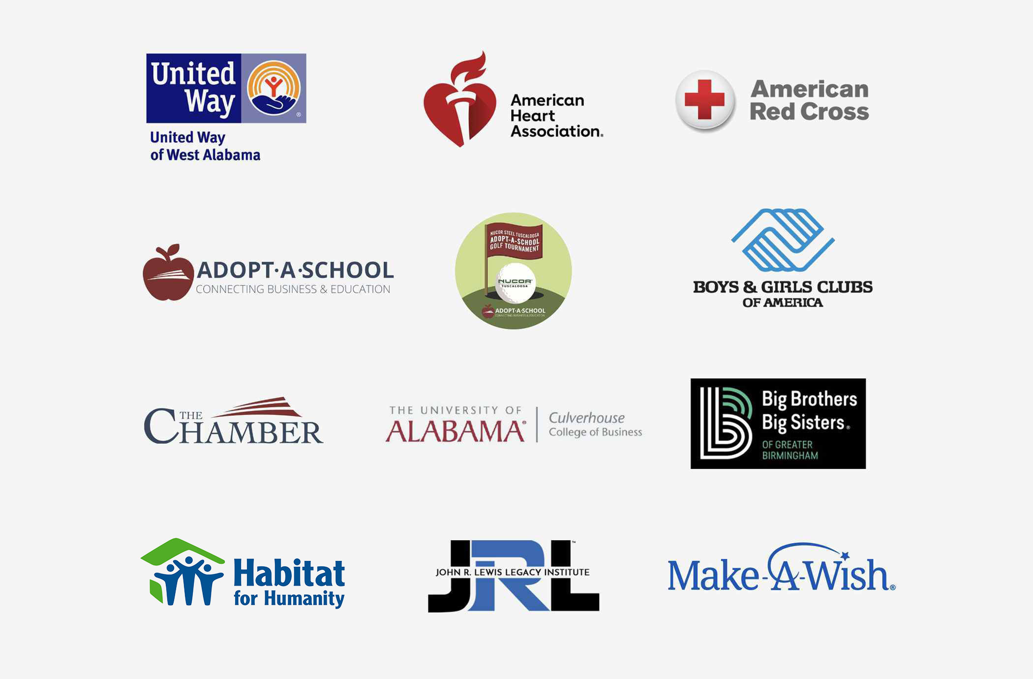 Alabama Head Injury Foundation, American Red Cross, Arts ‘n Autism, Big Brothers Big Sisters, Black Warrior Council Boy Scouts, Boys & Girls Club, Brookwood Schools, Caring Days, Catholic Social Services, Child Abuse Prevention Services, Children of the Village Network, Easter Seals of West Alabama, Family Counseling Service, Five Horizons Health Services, FOCUS 50+, Girl Scouts, Good Samaritan Clinic, Hospice of West Alabama, Inc., Phoenix House, Salvation Army, Sickle Cell Association, Temporary Emergency Services, The Arc of Tuscaloosa County, Theo Ratliff Activity Center, Turning Point, Tuscaloosa SAFE Center, Tuscaloosa’s One Place, UCP of West Alabama